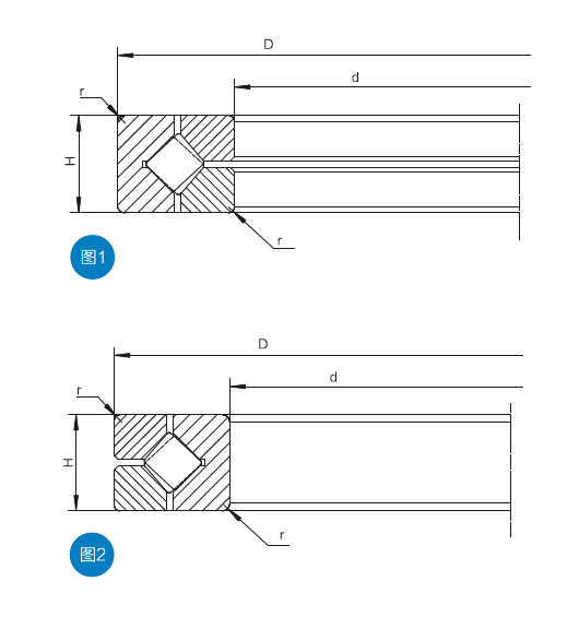 (圖1是該類軸承最常見的形式,這種類型由一個(gè)雙滾道的外圈和兩個(gè)內(nèi)圈組成,適合用于要求外圈旋轉(zhuǎn)精度的場(chǎng)合;圖2的類型由一個(gè)雙滾道的內(nèi)圈和兩個(gè)外圈組成,適合用于要求內(nèi)圈旋轉(zhuǎn)精度的場(chǎng)合)